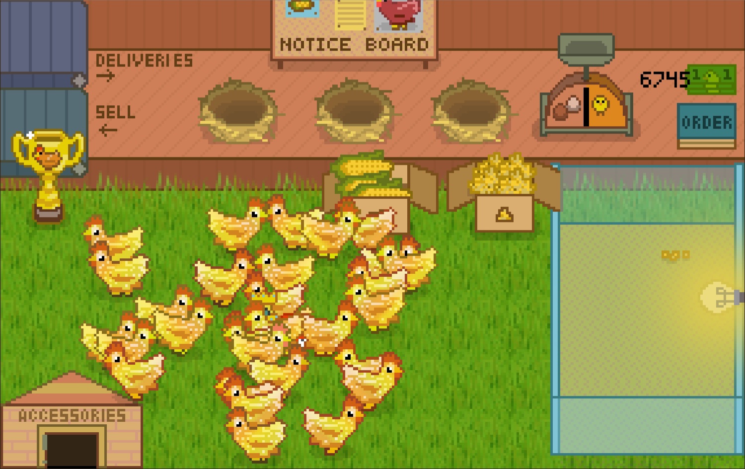 Started this on a whim, and five minutes later found myself deeply invested in managing my chicken farm. Lovely game!
